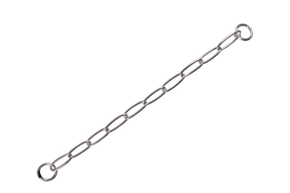 Cadena de ahogo de una hilera de metal diseñada para proporcionar seguridad y control al guiar al perro. Este collar es robusto, extremadamente resistente a la rotura y fácil de limpiar, ideal para un manejo seguro y efectivo durante los paseos y entrenamientos. Con eslabones de cadena extra grandes, asegura una protección adicional para el cuello del perro mientras mantiene un diseño atractivo y funcional. Fabricado con elementos de cadena soldada, garantiza la resistencia necesaria para soportar la tracción. propiedades: - categoría: collares - color: gris - material: metal medidas: - largo: 55 cm - ancho: 4 mm Disponible en diferentes tamaños para adaptarse a las necesidades de perros de distintos tamaños y razas.